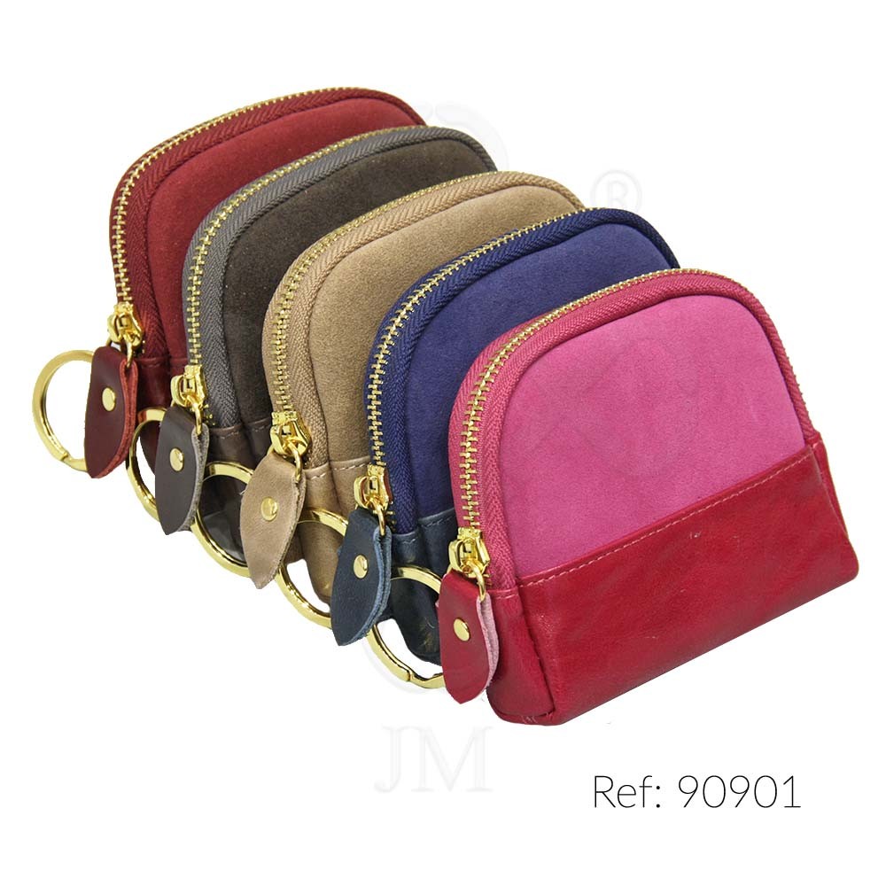 Monedero de piel con llavero y bolsillo interior